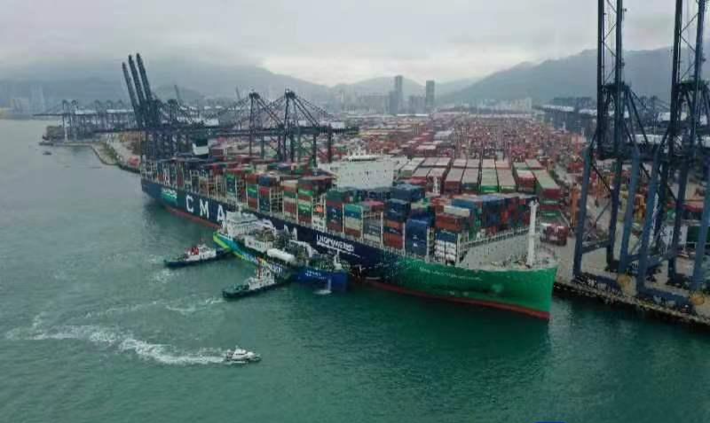 11月22日下午3时,全球最大C型罐式LNG加注船“新奥普陀号”与达飞旗下全球最大双燃料集装箱船在深圳盐田港海域成功“牵手”,通过软管为集装箱船顺利加注LNG(液化天然气)燃料,实现深圳市国际航行船舶LNG首船加注。这既是中央授予深圳的国际航行船舶保税加油许可权改革取得的突破性进展,也标志着深圳市在推动绿色航运发展、打造国际保税燃料加注中心的征程中又迈出了重要一步。深圳港由此成为继新加坡、鹿特丹、上海港后,全球第四、华南首个具备LNG加注服务能力的枢纽港。