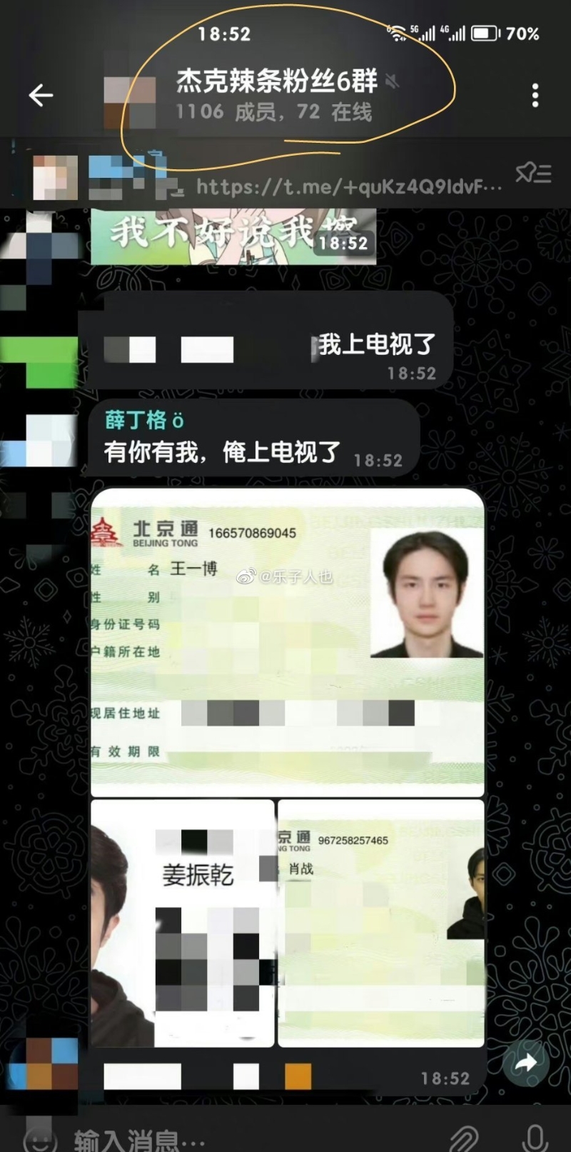 ▲肖战、王一博等艺人的个人资料被虐猫群组公开。
