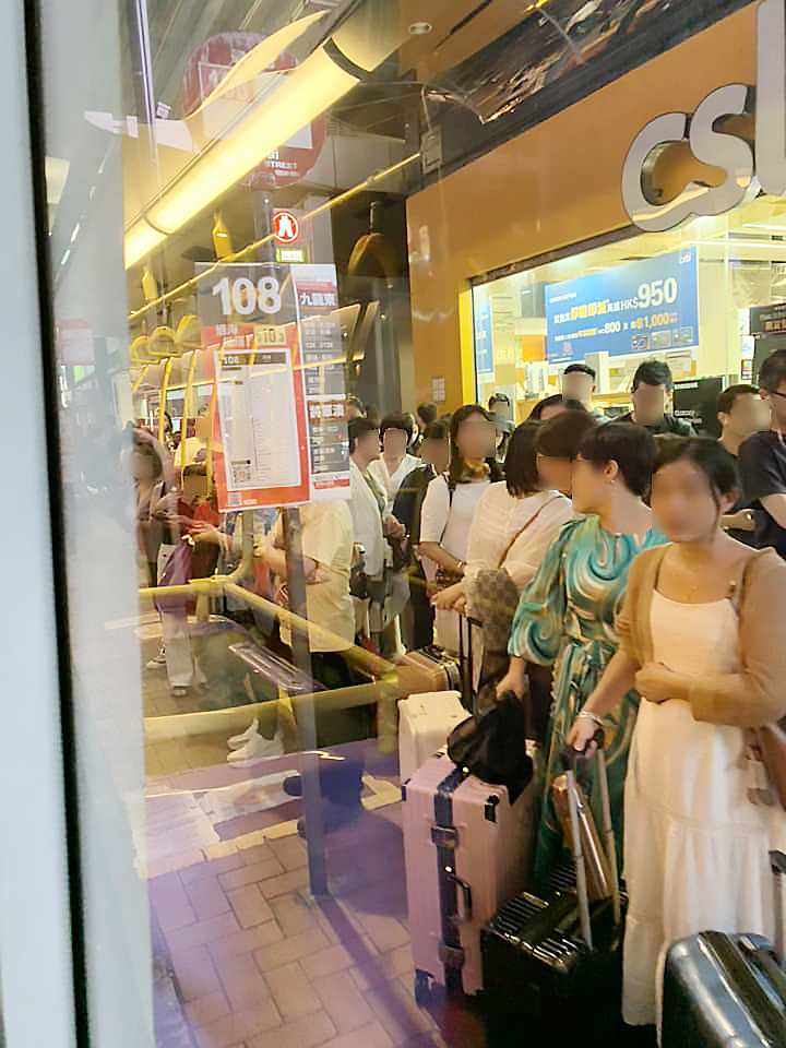 司机开门与这批内地客周旋,最后用一高招,以合理理由,拒绝大部分人上车,在场网民指最终只有“7个行李箱”上到车。