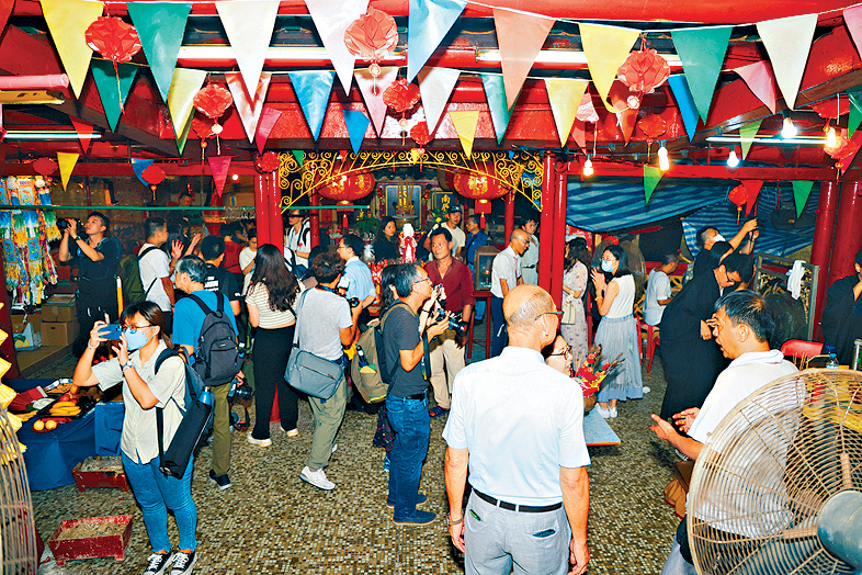 另一边厢,香港潮属社团总会也跳出传统框框,在盂兰文化节租用观光旅游巴接载市民穿梭盂兰胜会,更把盂兰节改造成年轻人热爱的“剧本杀”主题,为新一代带来沉浸式体验。常务会董胡炎松指,“盂兰剧本杀”加入了大量文化元素,融合传统文化和潮流,网上有1000人报名预约体验。他续说,总会在疫下移师会展举行潮州节,尽管因疫情无法现场提供饮食,也特意搭建实景的“打冷大排档”,放满卤水墨鱼、功夫茶及红桃粿模型,同样吸引不少市民“打卡”。