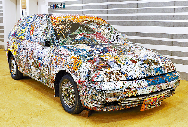 ▲饰以4.1万枚马赛克瓷砖的汽车,是博物馆的亮点。