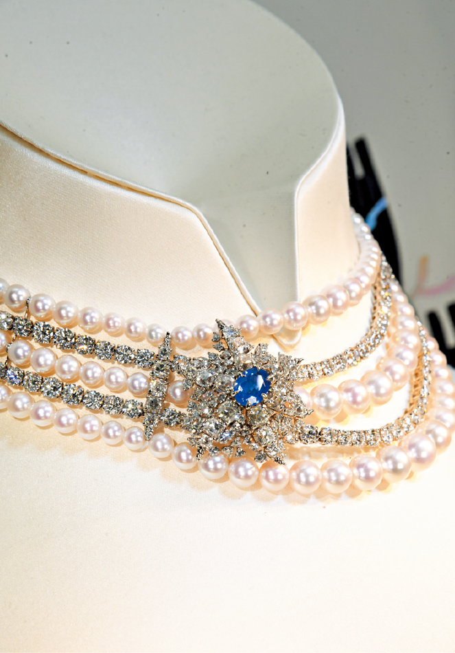 ▲海岩星韵(Star Fish)蓝色尖晶石及Akoya珍珠钻石铂金项链。