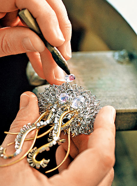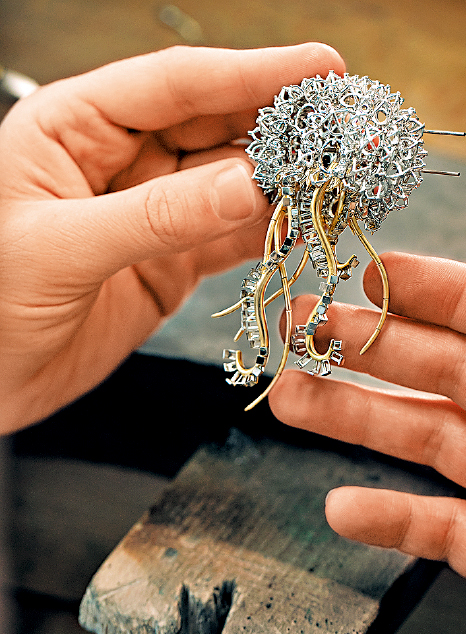 ▲水母的“触手”部分镶嵌蓝宝石,跟白钻营造色彩对比,平添光影层次感。