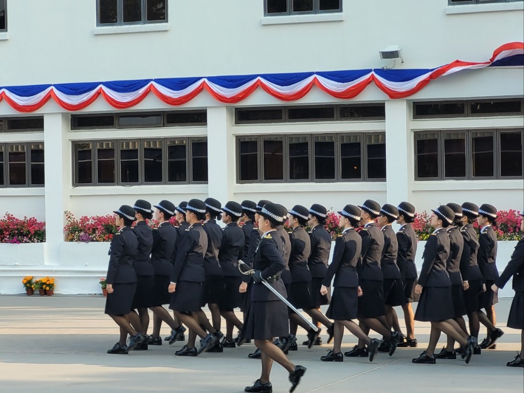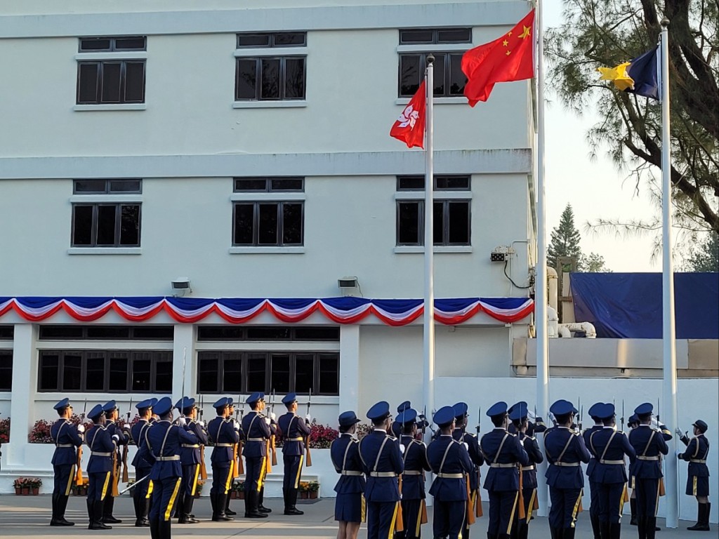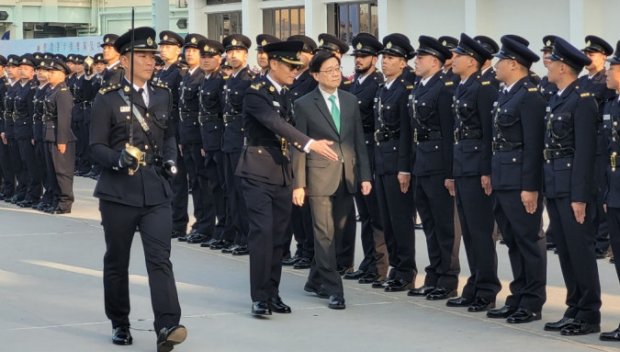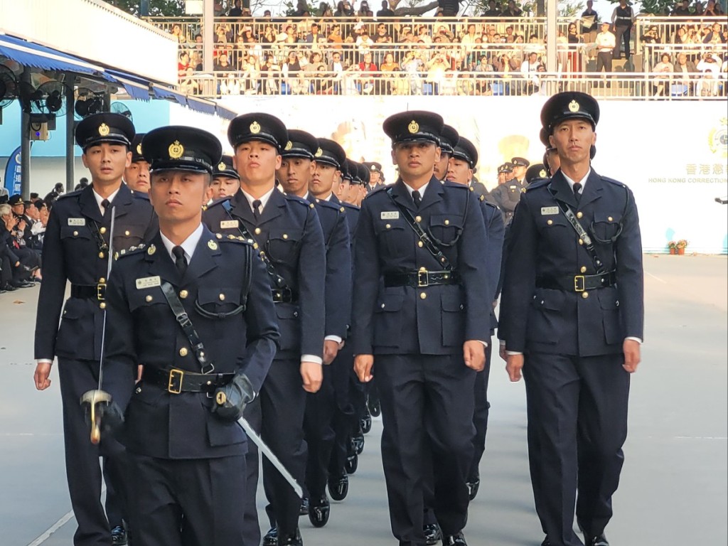 惩教署今日(24日)在赤柱香港惩教学院举行学员结业会操。行政长官李家超出席结业仪式,检阅128名二级惩教助理,期间结业学员表演中式步操,拼出惩教署徽章内的指南针图案。李家超指,指南针图案象征结业学员对服务国家、服务香港的清晰目标和方向;又冀他们为社会上,曾经“荡失路”的人指引前路。