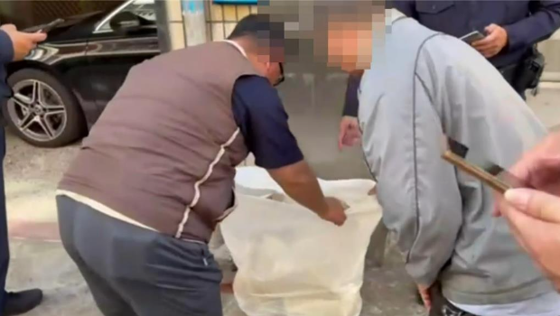 ▲梁嫌(右)向警方说他只是不喜欢柯文哲这个人,没有政党倾向,徒手撕下柯文哲竞选海报已丢掉。大雅警分局提供