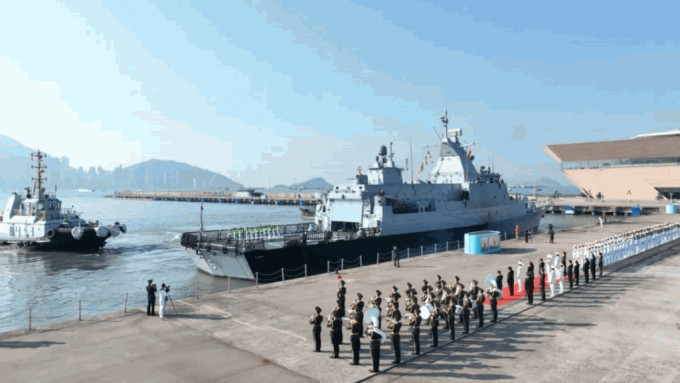 ▲驻香港部队官兵以及外交部驻香港特派员公署和香港特别行政区政府代表120余人,在昂船洲军港码头为两国军舰举行欢送仪式。