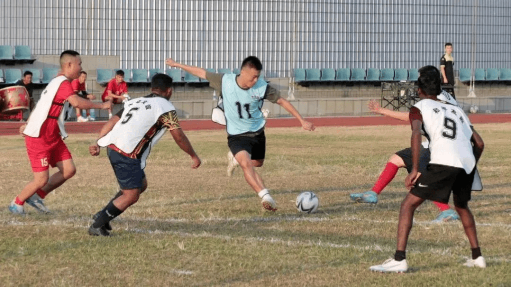 ▲举办足球友谊赛。