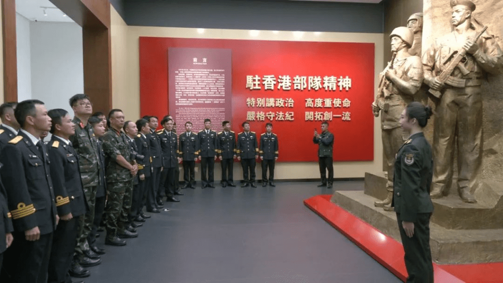 ▲两国海军官兵共同参观驻港部队展览中心。
