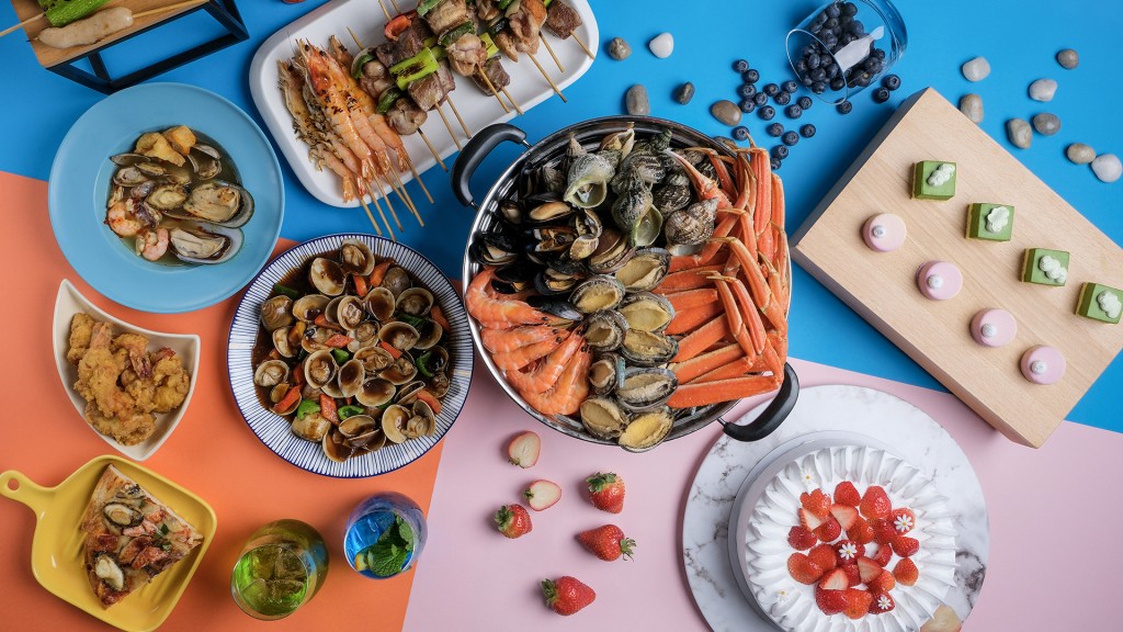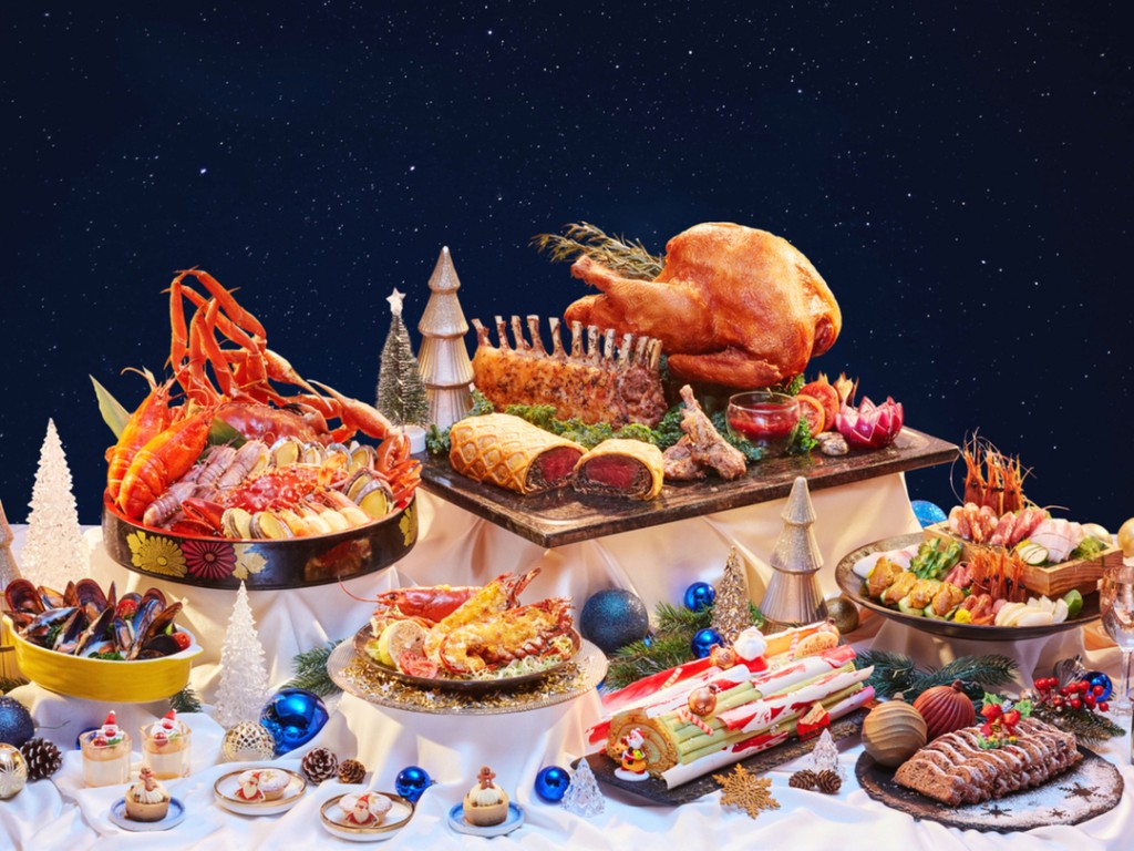 推荐必食之选包括肉质 Juicy 的圣诞火鸡配鸡肝汁、惹味蜜汁菠萝焗火腿、焗威灵顿牛柳、鲜味十足的海鲜鲍鱼冻批、美味诱人的波士顿龙虾、加拿大雪花蟹脚、新西兰青口和面包蟹。 甜品方面有节日特设圣诞树头蛋糕、圣诞蛋糕杯、圣诞布甸,以及红丝绒蛋糕、核桃批、苹果金宝等等。 另有火焰雪山表演,厨师即场在软绵绵蛋白霜的海绵蛋糕上淋上烈酒再点燃,以火焰炮制出夺目耀眼的画面,让您享受甜品的美味和带来了独特的视觉体验。 以以下连结订购,更独家送无限畅饮汽水及冻果汁、额外多1小时。