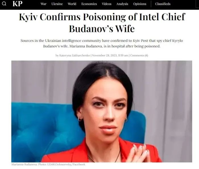 据外媒11月28日报道,乌克兰国防部情报总局局长布达诺夫的妻子布达诺娃遭投毒,疑似重金属中毒,目前正在医院接受治疗。