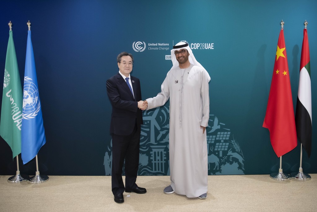 ▲丁薛祥会见联合国气候变化迪拜大会主席苏尔坦。新华社