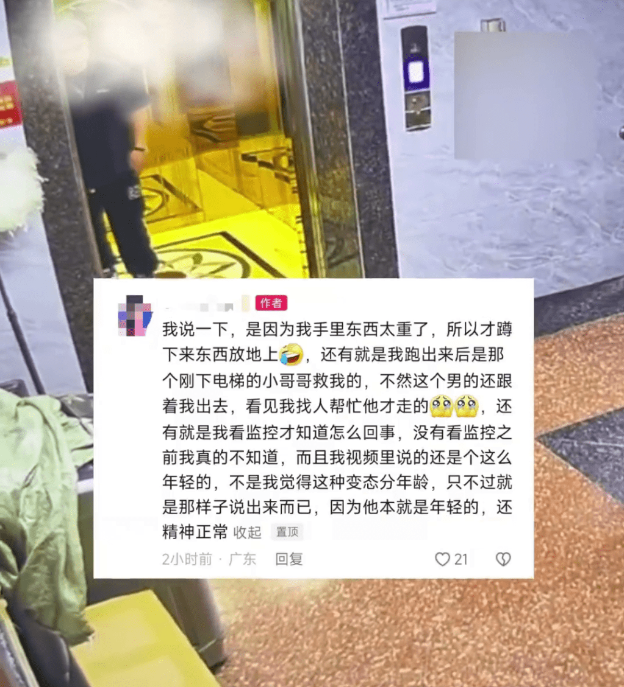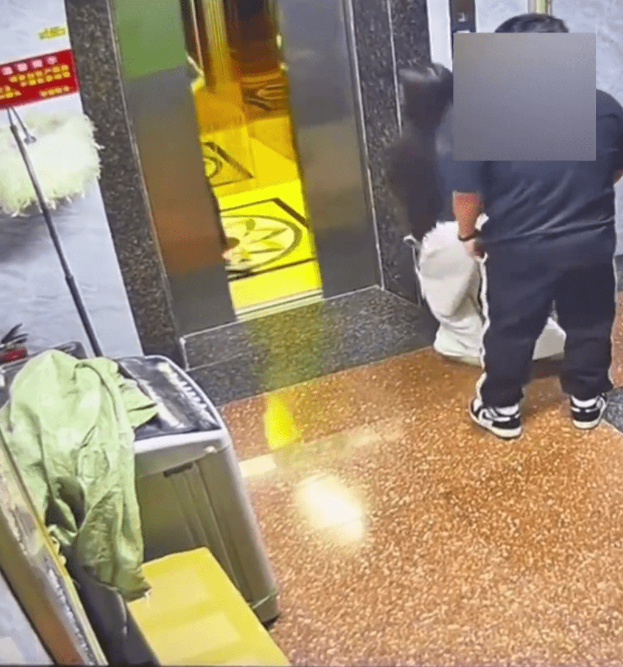 ▲女子蹲下等电梯遭变态男用下体多次从后猥亵,被尾随入电梯用“一招”脱身。