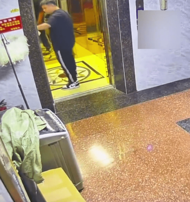 ▲女子蹲下等电梯,黑衫男一步一步悄悄从后靠近。