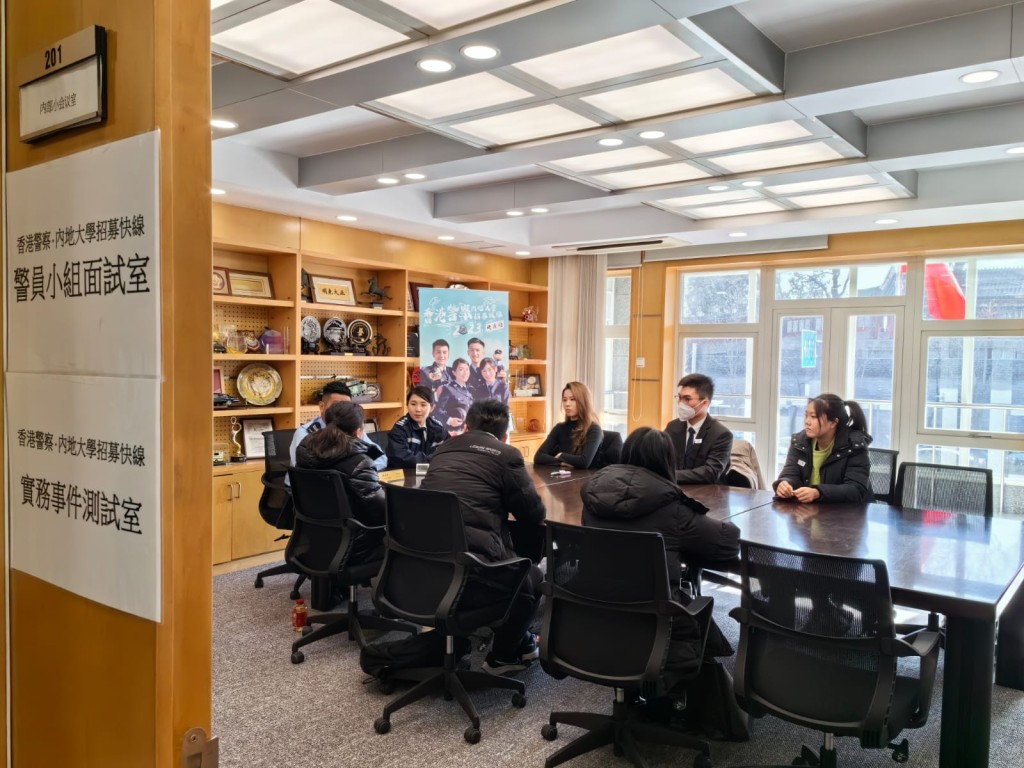 近年,有不少香港学生选择往内地升学。为便利于内地就学的香港学生,香港警察自2022年11月开始到访国内的大学举行 “香港警察·内地大学招募快线”活动。除举办招募讲座外,亦在校园即场进行警察遴选程序,现场亦有现职警察及招募组人员进行讲解及分享。