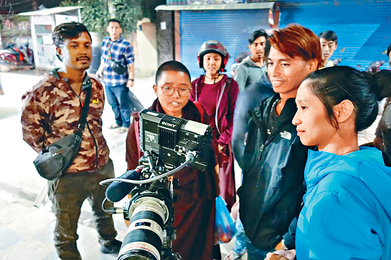 ▲林芬(右一)与团队横跨不同地区拍摄女尼的故事。