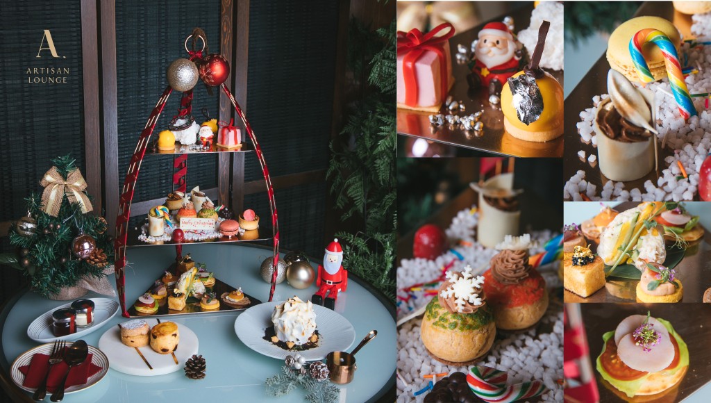 一将美食糅合艺术的K11 MUSEA Artisan Lounge,于12月推出圣诞套餐及限定下午茶,以优质食材炮制出一系列精緻美点,并以特制的茶点挂架盛载并悬浮于桌上,造型相当吸睛,非常适合打卡。咸点包括有鱼子酱立方、无花果鹅肝冻、火鸡小薄饼、帝皇蟹肉米卷、杏脯布里奶酪;配以7款可爱甜点,包括草莓礼物包、芒果铃铛、泡芙栗子圣诞树、小胡桃批、扭纹海盐朱古力小蛋糕、工匠朱古力、马卡龙,叫人忍不住“相机先食”,疯狂打卡。