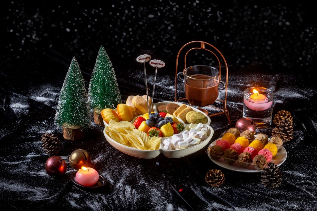 港青酒店YMCA推出Haagen Dazs Chocolate Fondue 二人朱古力窝套餐,让大、小朋友可一次过品尝16球Haagen Dazs 雪糕包括柚子柠檬马卡龙、草莓、开心果、栗子,还可配上5款配料,包括牛油蛋糕、曲奇饼、薯片、鲜杂果、迷你棉花糖、七彩迷你朱古力豆,加多杯咖啡、茶、热朱古力或圣诞热红酒,节日气氛更浓厚。