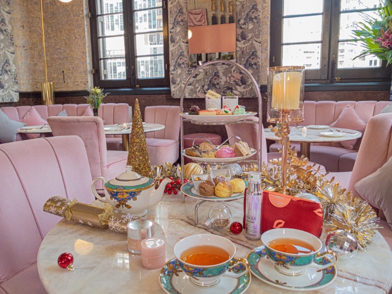 “粉红冰雪”主题下午茶灵感源自富科技感的北极实验室和缤纷的圣诞色彩,让宾客沉浸在充满欢乐和节日气氛的用餐体验,茶点包括圣诞蛋白饼、蜂蜜芦荟亚麻籽布甸、日本红豆抹茶果冻、白朱古力柠檬挞、香蕉慕丝、粟米龙虾沙律、蟹肉水栗田园三文治、香草橄榄玛德莲蛋糕、西班牙洋葱马铃薯蛋饼、蔷薇虾饺、肉桂松饼 及 蔓越莓杏脯干松饼配奶油忌廉及柚子果酱 。