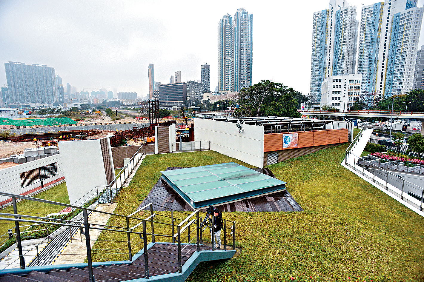 ▲渠务署在九龙城1号污水泵房试用透水路面、草砖等可持续排水措施。