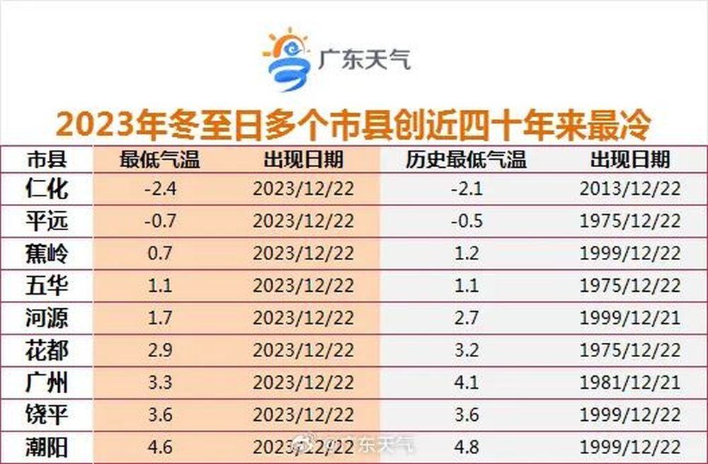今天冬至(12月22日),广东多个市县创近40年来最冷纪录,仁化、平远、蕉岭、五华、河源、花都、广州、饶平、潮阳早上最低气温都破了历史纪录。广州最低气温预计3℃,最高气温12℃。网传东莞下微雪、流溪河国家森林公园五指山景区迎来白茫茫一片美如仙境的“雪景”。