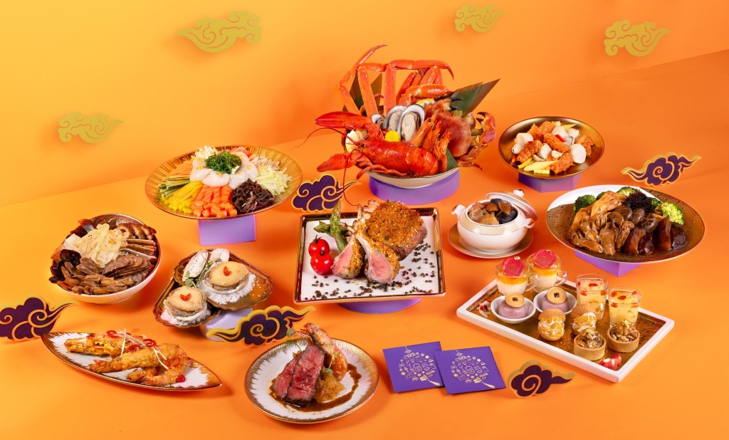 2 月 9 - 14 日限定“飞跃龙腾自助午餐”提供“风生水起”三文鱼、带子及油甘鱼捞起沙律、“盘满钵满”聚宝盆中式卤水拼盘、“鸿运当头”烧乳猪、“发财好市”海参发菜蚝豉炆鸭掌、“横财就手”甜醋猪脚姜、蟹肉羊肚菌粥及贺年甜品。而“飞跃龙腾自助晚餐”更有新鲜蒸焗龙虾、酒醉鲜鲍鱼、姬松茸元贝螺头竹丝鸡炖汤等,祝一家大小好运年年。