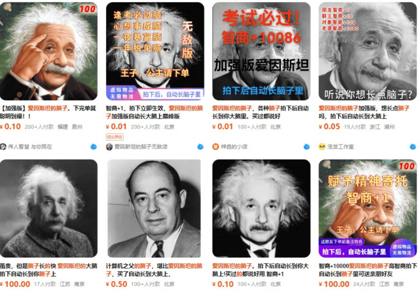 当然,淘宝网售的不是真正的脑袋,只是虚拟商品,但这些脑袋承载住的是心灵的慰藉,代表年轻人给自己加油打气。专家分析这类虚拟商品受欢迎原因,代表新一代年轻人特有的消费偏好,他们积极寻求自我调试,重视情绪疗愈以应对内心挫折。其实除了爱因斯坦的脑袋之外,网上还有“恋爱脑”、“社交脑”、“搞钱脑”、“考试脑”等虚拟产品,大家又会否有兴趣试一试这些“脑袋”?