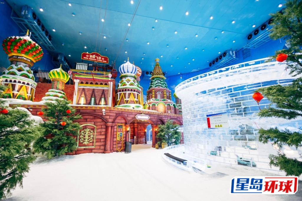 ▲冰雪乐园更打造了参考俄罗斯风格的“飘雪小镇”。