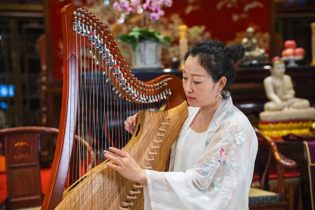 ▲现场可欣赏古乐器箜篌的演奏,机会难逢。