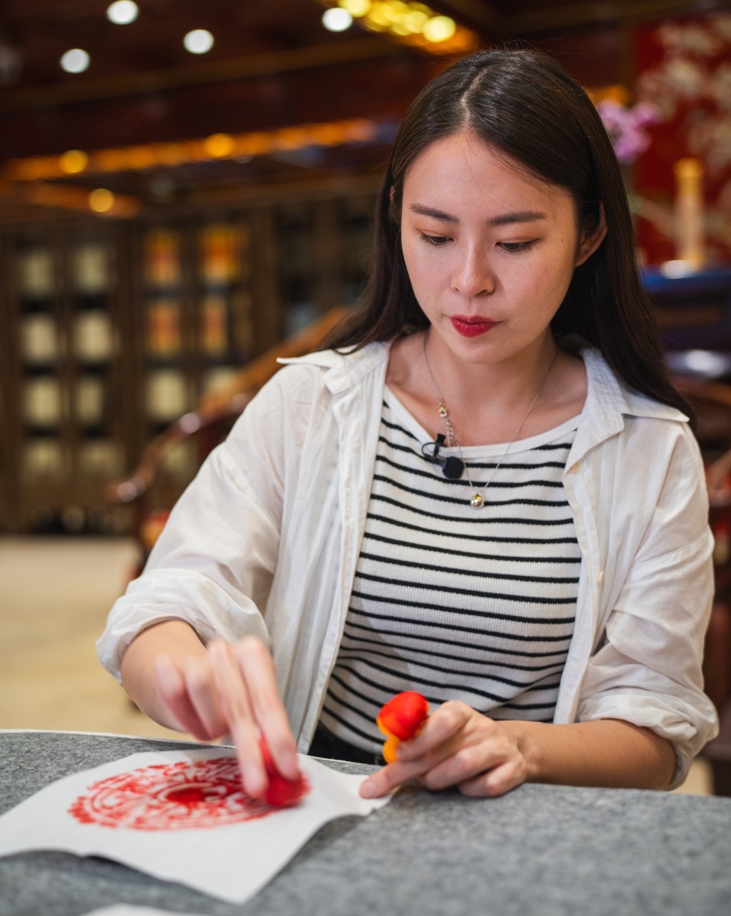▲体验拓印活动的朋友,可把拓印成品拿回家,为自己带来祝福。