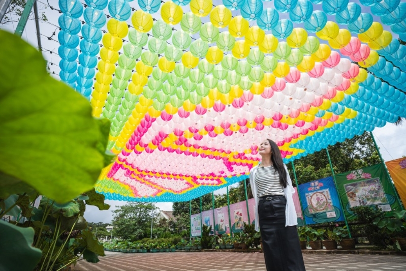 ▲中间大道上以气球组成荷花图案,是必影打卡位之一。