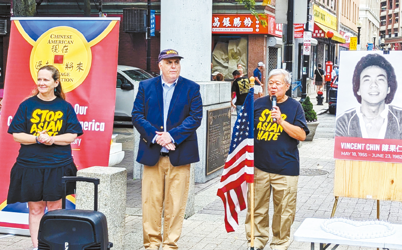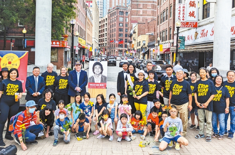 23日下午,美洲同源会(CACA)波士顿分会同美华传统基金会(CAHF)在波士顿唐人街举行纪念陈果仁(Vincent Chin)遇害42周年活动。市府官员、同源会和美华传统基金会会员以及社区民众近百人出席,中华侨立学校的学生们向陈果仁遗像献花。