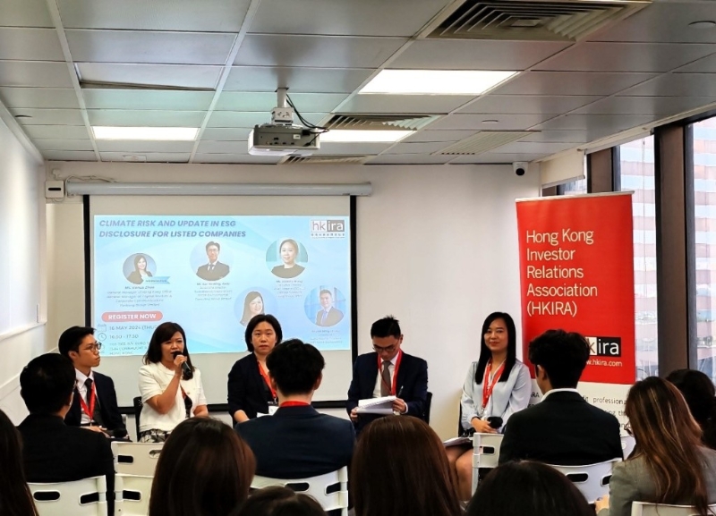 注:香港投资者关系协会在五月十六日举办了一个气候风险和上市公司 ESG 披露研讨会。气候变化已成为全球关注的焦点,投资者需要更多了解气候问题和政策变化对企业的影响。香港交易所提出了修改 ESG 报告准则的建议,旨在加强与国际标准一致的气候披露。本研讨会让参与者从成功案例和最佳实践中获得了有关气候风险和上市公司 ESG 披露的宝贵见解。了解如何将气候披露融入业务战略。探索如何整合气候相关财务披露工作 (TCFD)的关键要素,包括董事会对 ESG 事项的监督、环境目标和披露与 气候相关的影响。