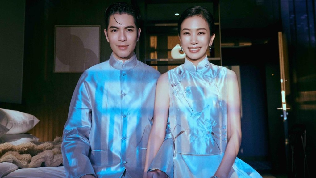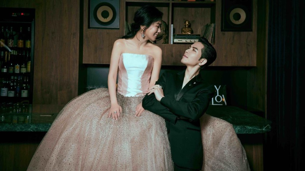 ▲萧敬腾跟Summer丝缎旗袍领露背订制长礼服。