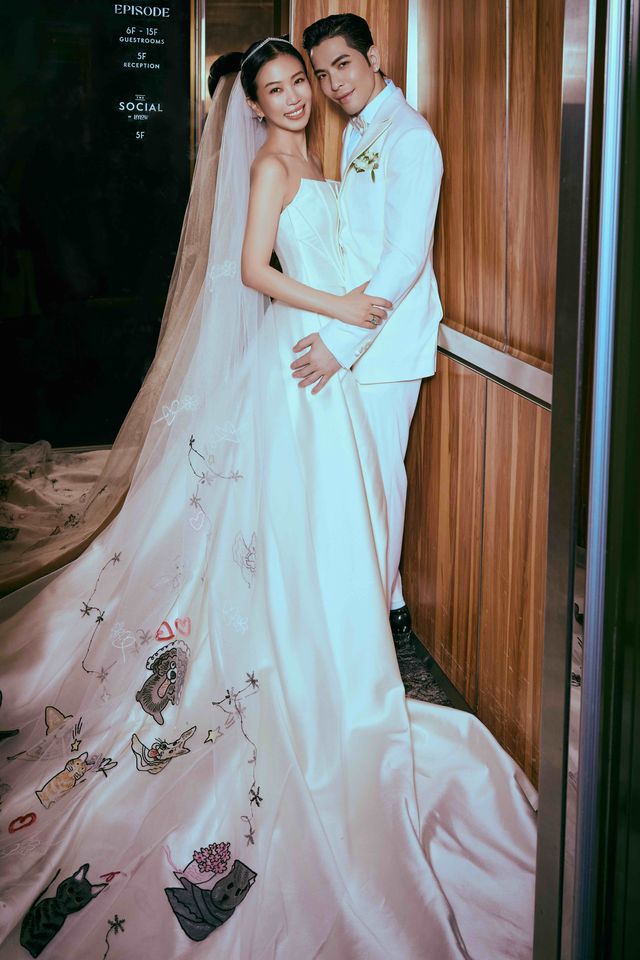 这场盛大婚礼将包下万豪酒店5楼宴会厅,宾客名单星光熠熠。萧敬腾透露因与Summer工作忙碌,一直到这周才投入婚礼会议,但希望每一位参与的亲友、同事都能开心。萧敬腾昨晚(12日)也在IG晒出两人甜蜜相拥的照片,笑称婚礼前照吃照喝照打球,是“世界上最chill的新郎新娘”。Summer的婚纱礼服包括SHIATZY CHEN 夏姿‧陈的“丝缎旗袍领露背订制长礼服”,搭配CHAUMET的铂金戒指与Christian Louboutin的墨绿色小牛皮皮鞋;以及来自LinLi Boutique(林莉婚纱)的“星鑽璀灿马甲晚礼服”、“法式浪漫复古宫廷白纱”、“复古典雅马甲白纱”三款婚纱。萧敬腾的西装则是Tagliatore的黑色经典款及Lardini的白色经典款,及SHIATZY CHEN 夏姿‧陈的礼服。两人的珠宝全来自CHAUMET。