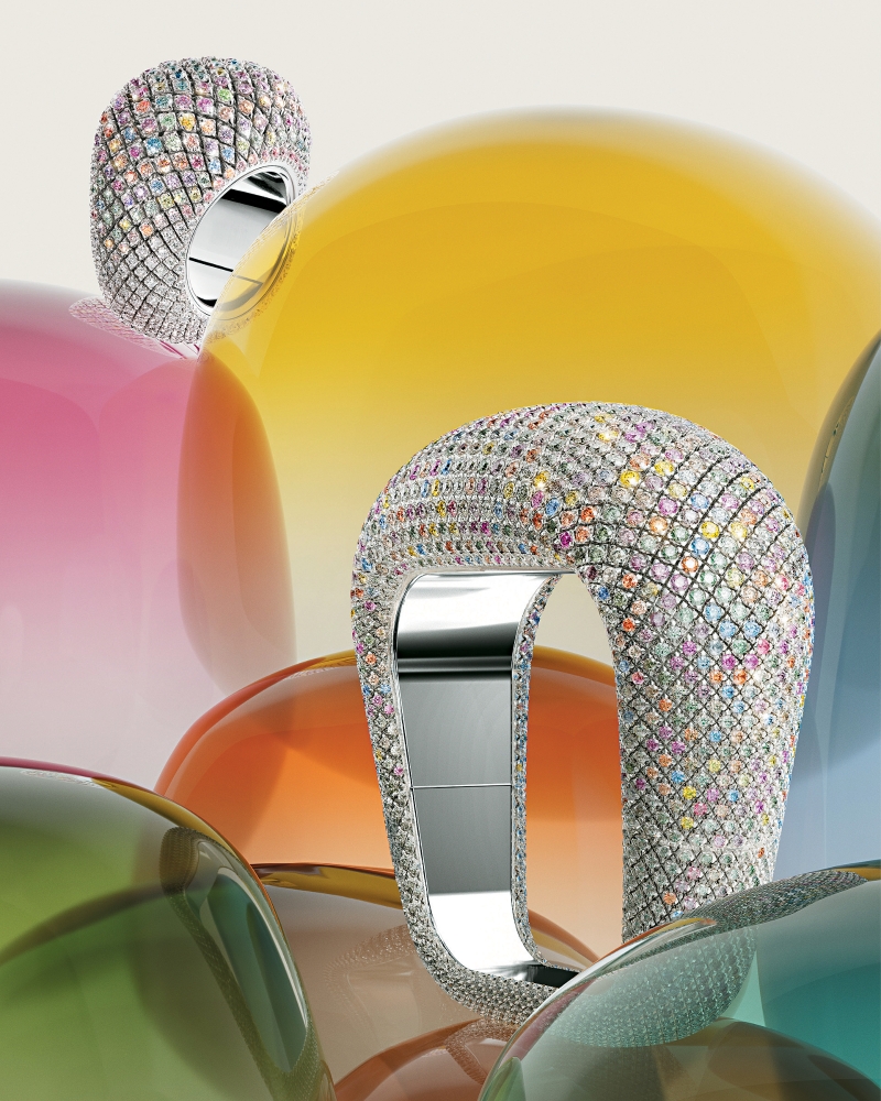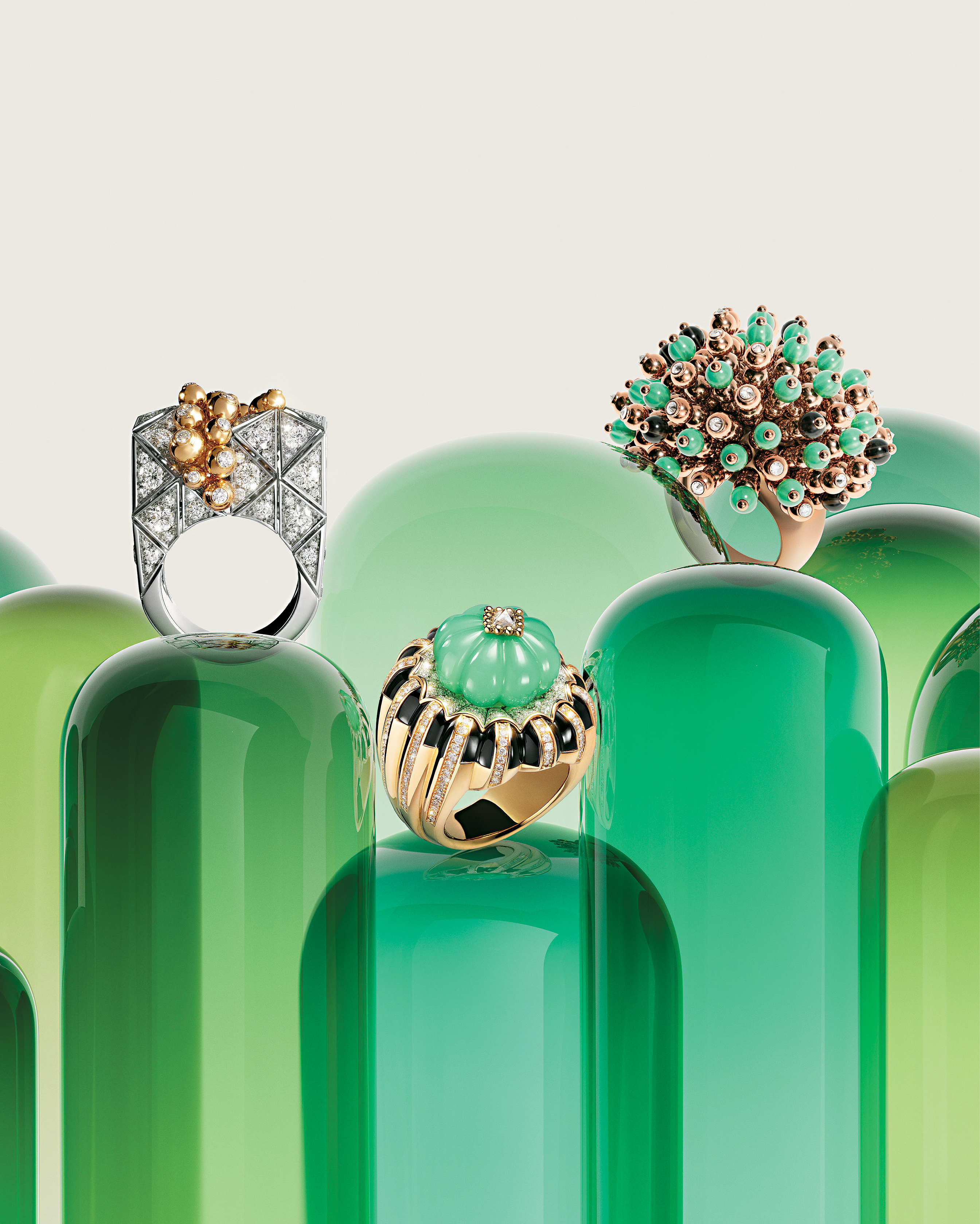 Libre法文意指“自由”,卡地亚创意工作室创作的Cartier Libre系列正是以自由挥洒创意的理念,旨在探索和解读卡地亚经典创作主题。此工作室打从腕表系列开始,至后来涉猎珠宝及饰件等不同品牌产品系列,并创制出令人印象难忘的限量杰作。Cartier Libre系列最新篇章名为Tuttitutti,作品糅合妙趣意蕴与大胆创意,并融汇轻盈姿态和别致造型。指环缀以宝石流穗点,摇曳生姿;腕表上浮现晶莹气泡,演绎珍贵时光;串串K金圆珠,随摆动玲珑作响。新奇的形态拼凑色彩绚丽的宝石,营造出对比反差;独特的造型、线条与材质亦巧妙碰撞出不一样的火花。