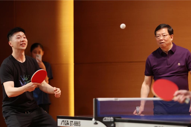 ▲大陆乒乓球名将马龙(见图)近日跟随陆生团访台,29日前往文化大学进行交流,并与台湾退役乒乓球名将蒋澎龙与巴黎奥运国手陈思羽切磋球技,上演奥运层级的交流赛。