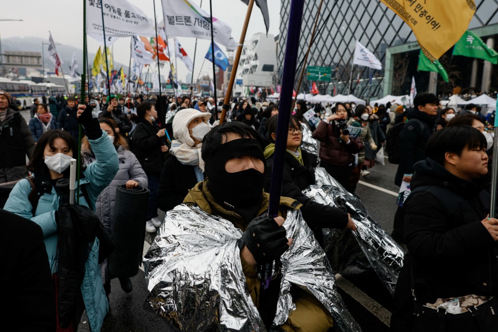 ▲大批民众冒风雪集会抗议尹锡悦拒捕。路透社