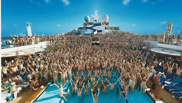 ▲“裸体邮轮”吸引大批追求自由体验的旅客参加。 Bare Necessities Tour and Travel