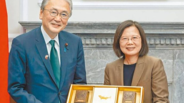 ▲日恳会会长古屋圭司访台时,获仍在任的蔡英文接见。中时