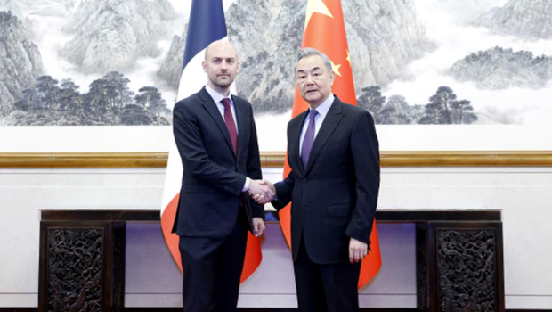 ▲图为中国外交部长王毅27日在北京与法国外长巴霍举行会谈。(中国外交部网站)