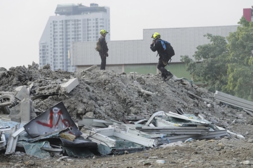 ▲有兴建中的33层高大楼倒塌,搜救持续进行。 美联社