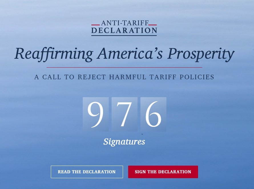 截至当地时间4月20日凌晨0时8分,“反关税”网站显示,已有976人签署这份“反关税宣言” ,其中包括数十名经济学者。