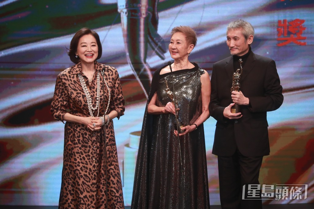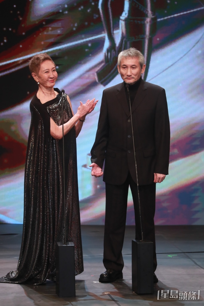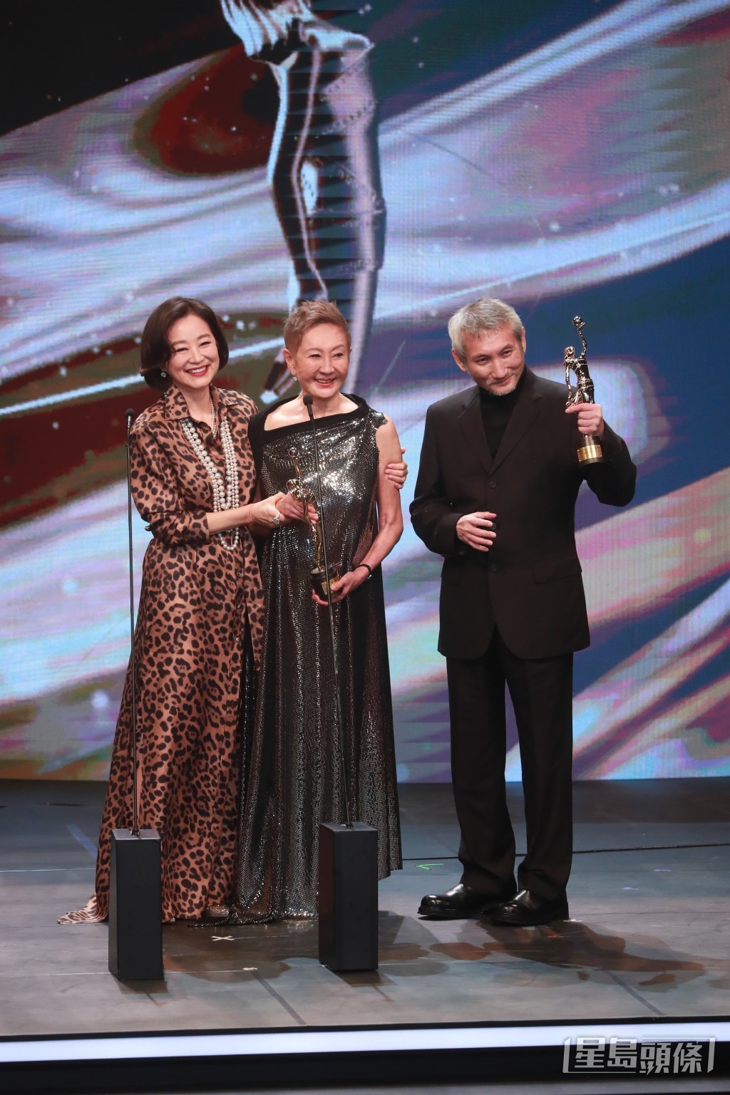 ▲林青霞为徐克及施南生颁发终身成就奖。