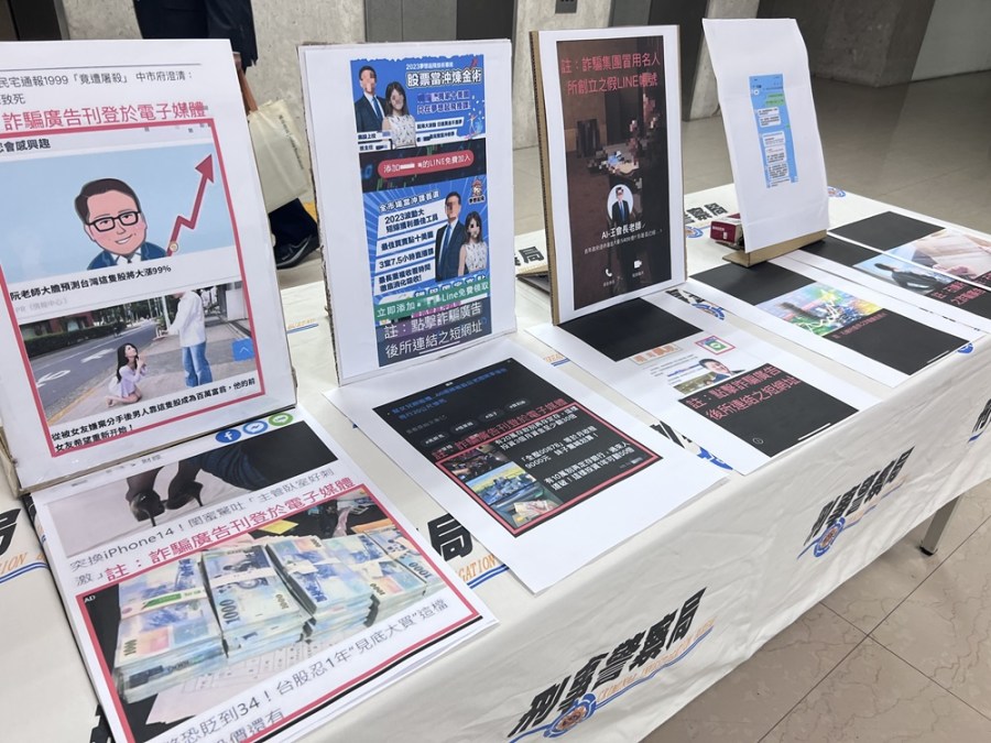 ▲台湾警方早前拘捕广告公司员工,向传媒展示疑犯涉嫌协助骗徒在网上平台发放的虚假投资广告。 网上图片