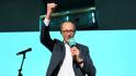 当地时间2025年2月23日,德国柏林,联盟党主席、总理候选人默茨在党总部上台向支持者发言。