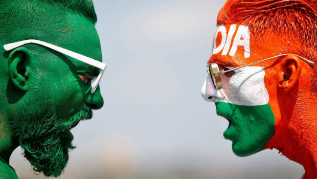 ▲2021年10月23日,两名男子在脸上涂鸦印度和巴基斯坦国旗。路透社