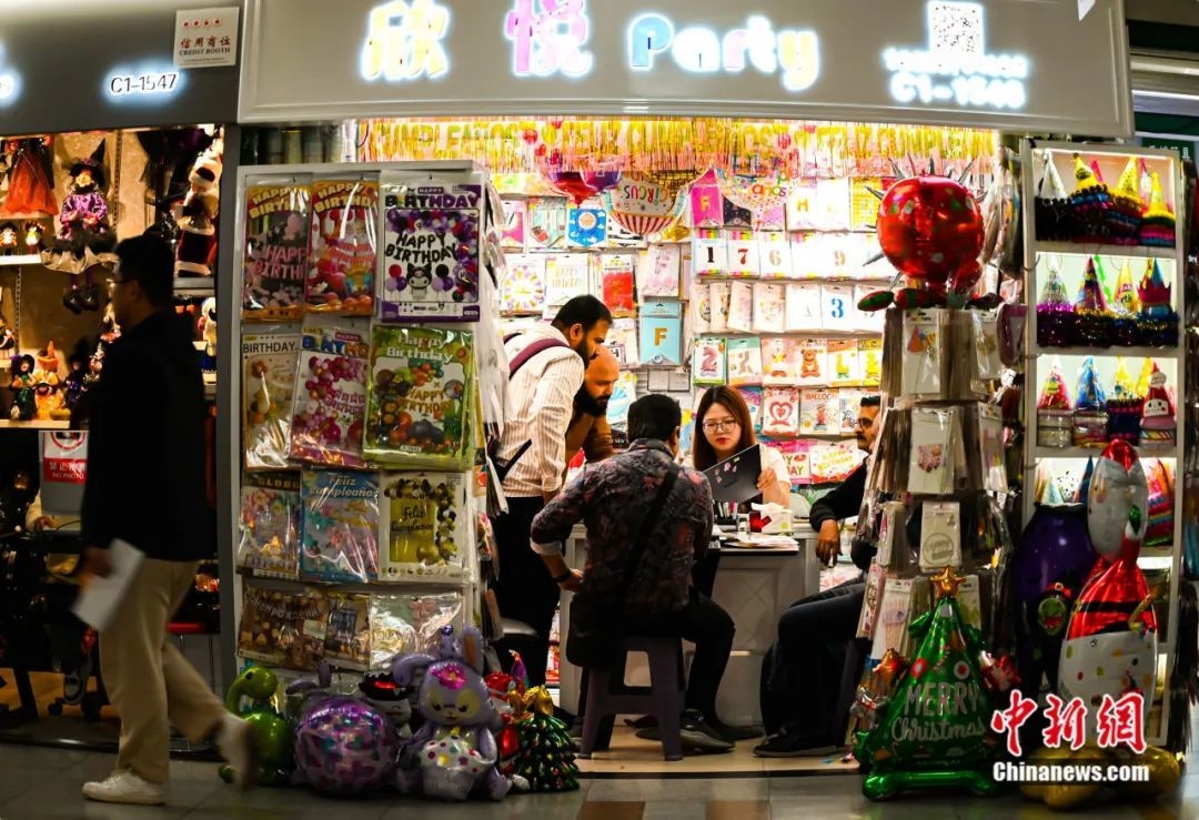 ▲资料图:外国客人在商贸城内购物。义乌宣传部供图