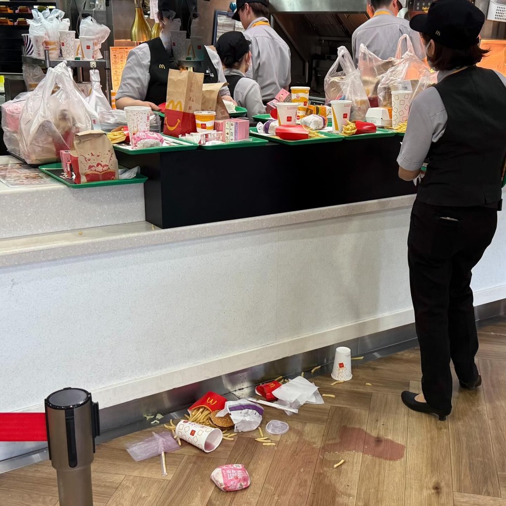 今次联名活动不仅吸引动漫粉丝争相排队,还引来大量黄牛党与代购业者加入抢购行列。为了集齐一整组玩具或转卖牟利,不少人一次购买多份开心乐园餐,只取玩具便将完整餐点弃置,造成严重的资源浪费。网上甚至出现柜台堆满无人领取的汉堡与薯条,部分还掉落在地、未经食用即被弃置到垃圾桶的画面,引发社会哗然。