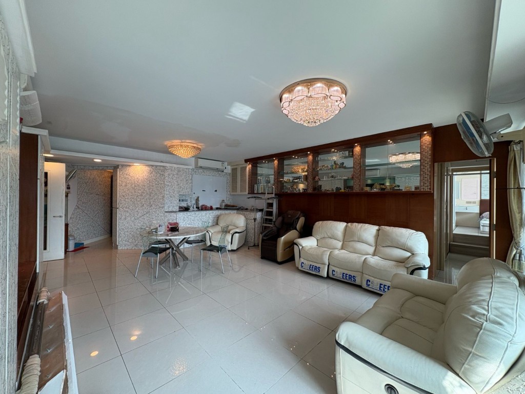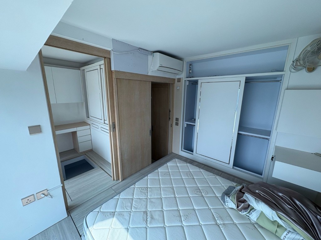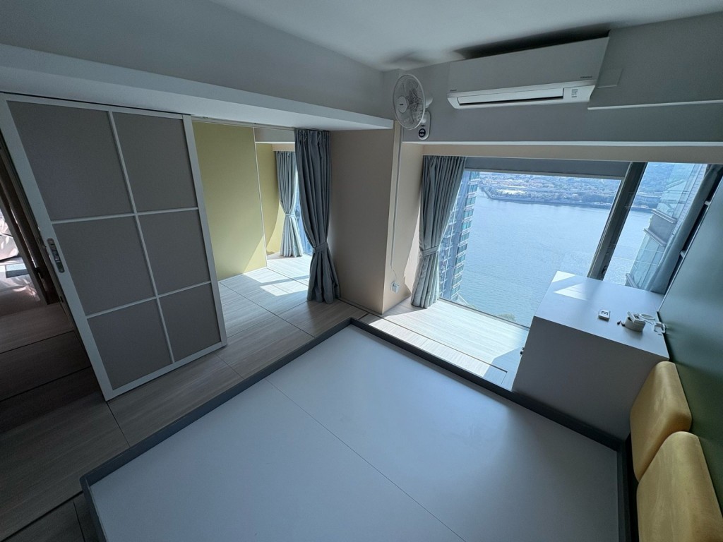 放盘现为4房2套设计,房间皆方正宽敞,走进主人套房,屋主装有地台,腾出更多地面空间,方便收纳各式用品。房间置中设有牀台,一旁为一列大窗,让住户可以随时欣赏窗外海景。走进另一房间,装有订造入墙衣柜,不愁收纳空间。