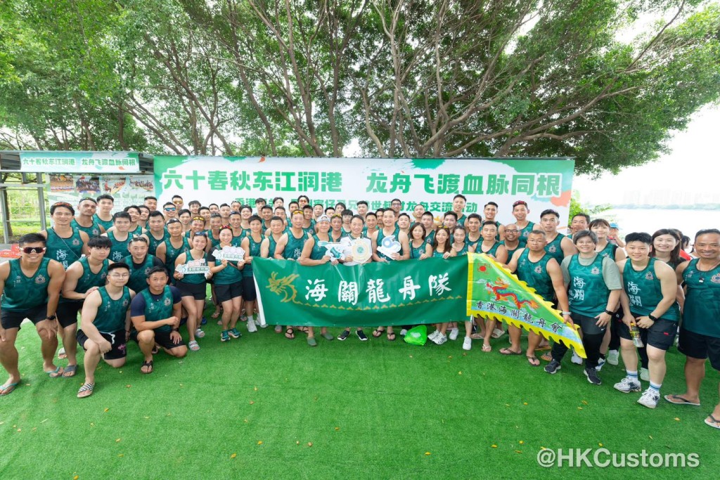 另外这次海关龙舟队亦带同水务署吉祥物滴惜仔回乡东江,借同根同源,血脉相连,传递对祖国的感恩之情。 最后海关期望,龙舟队能劈波斩浪,展现风采,为部门争光。